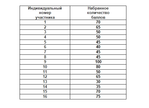 Результаты участников «Литературного диктанта» представлены в таблице. В ней указаны индивидуальные номера работ и количество набранных баллов.
