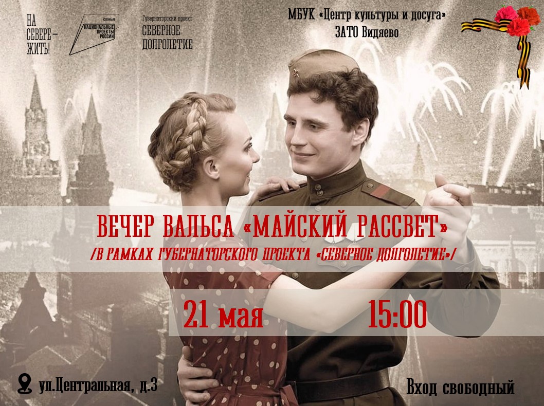 Центр культуры и досуга приглашает на вечер вальса "Майский рассвет", который пройдет в рамках работы любительского объединения «Северное долголетие». Мероприятие пройдет в тёплой дружеской обстановке, где каждый сможет насладиться танцем, познакомиться с новыми людьми и подарить себе минуты радости и вдохновения. Не упустите шанс провести время в кругу единомышленников и под чарующие мелодии вальса.